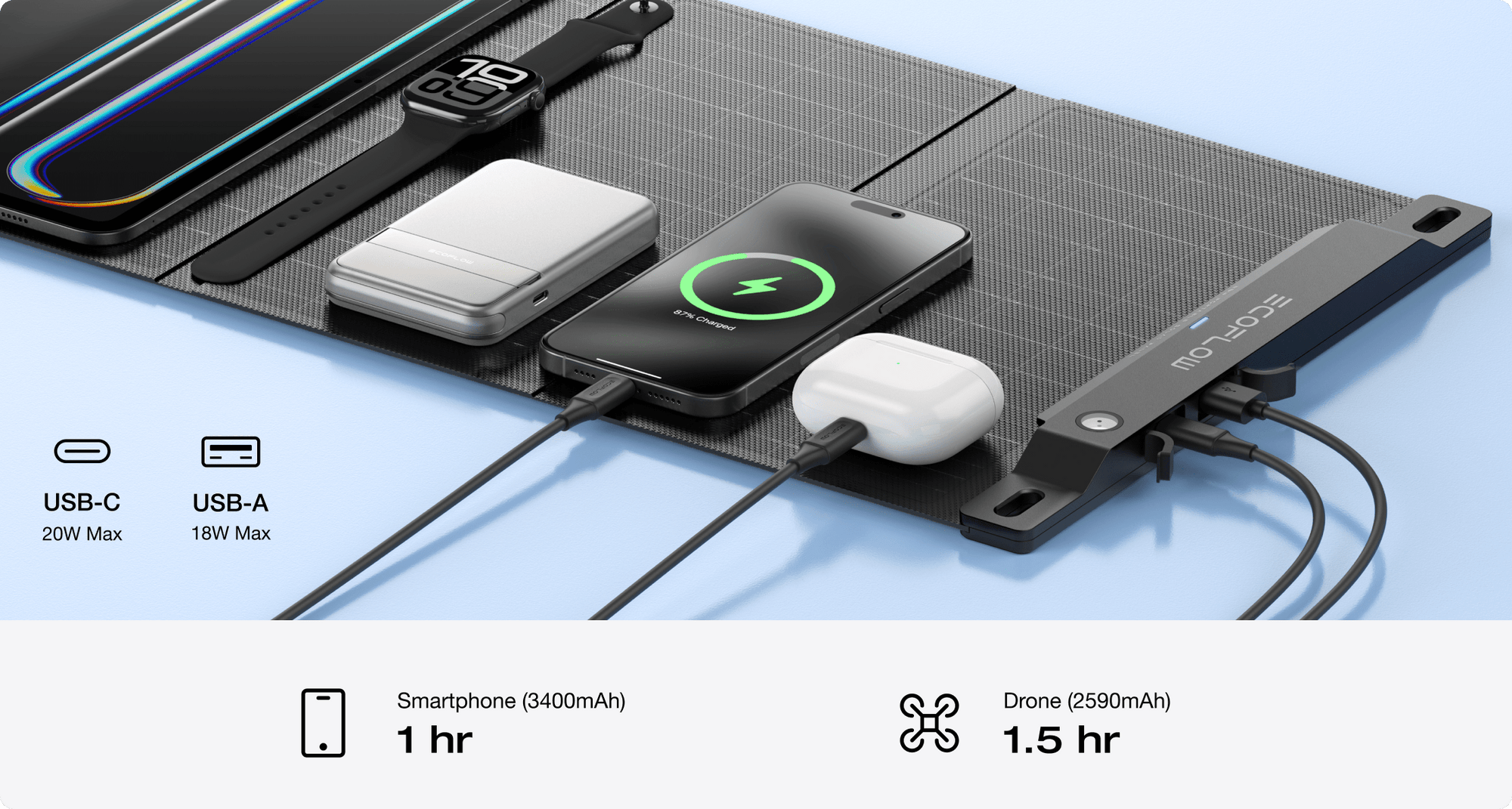*Due to its dual-battery design, the drone takes about 50% longer to charge compared to smartphones at the same power output.
