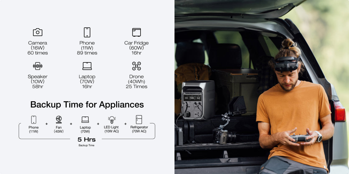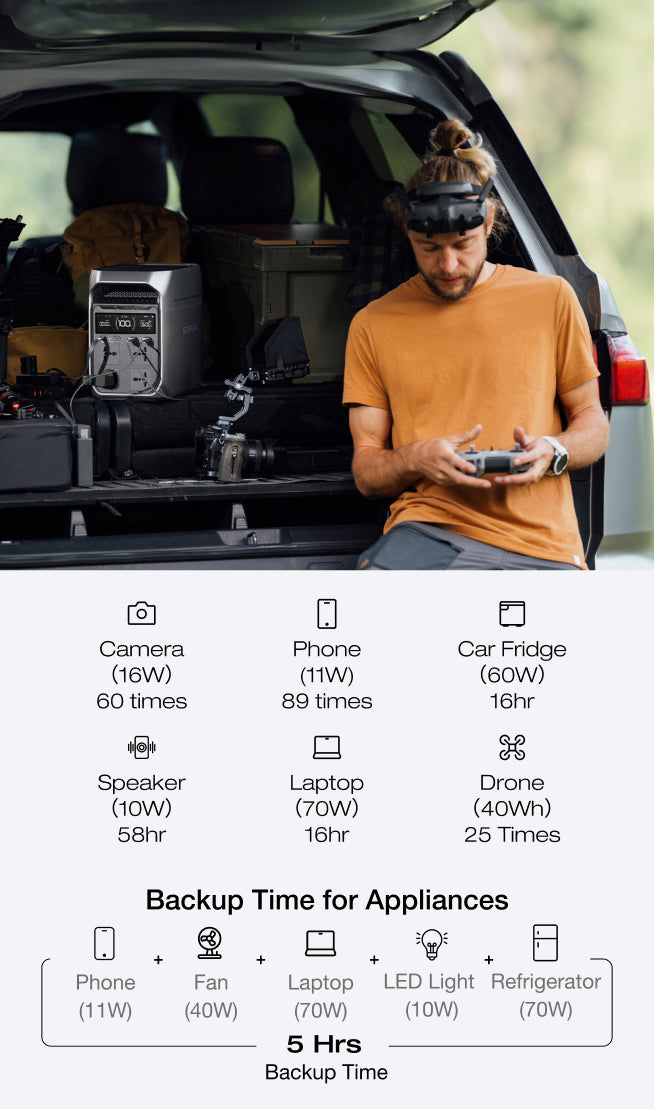 Charges your portable power station up to 8× faster than traditional in-vehicle options, fully recharging 1kWh in just 1.3 hours.