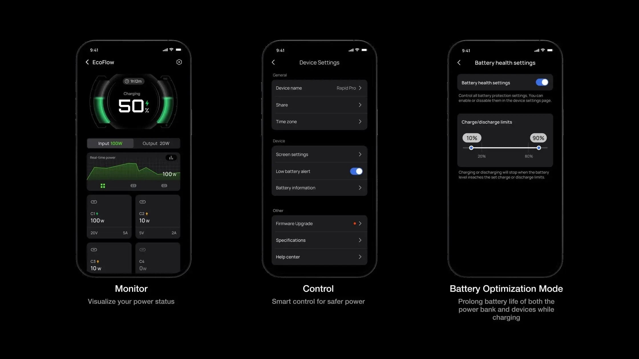 The app supports functions such as power monitoring, firmware upgrades, device management, theme switching, and charging strategy settings. Not connecting the power bank to the app does not affect its normal charging and discharging functions.
