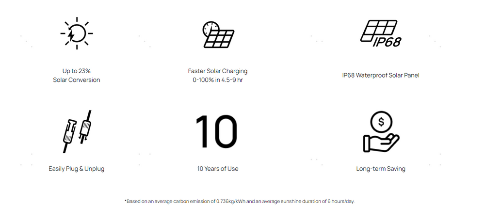 RIVER 2 Pro Solar Generator produces up to 1.8kWh daily, which means sufficient power to run your essential appliances smoothly for almost half a day. You'll always be ready. Using RIVER 2 Pro Solar Generator every day decreases your whole-year carbon emissions by about 143kg. That's like planting 8 trees in a year!*