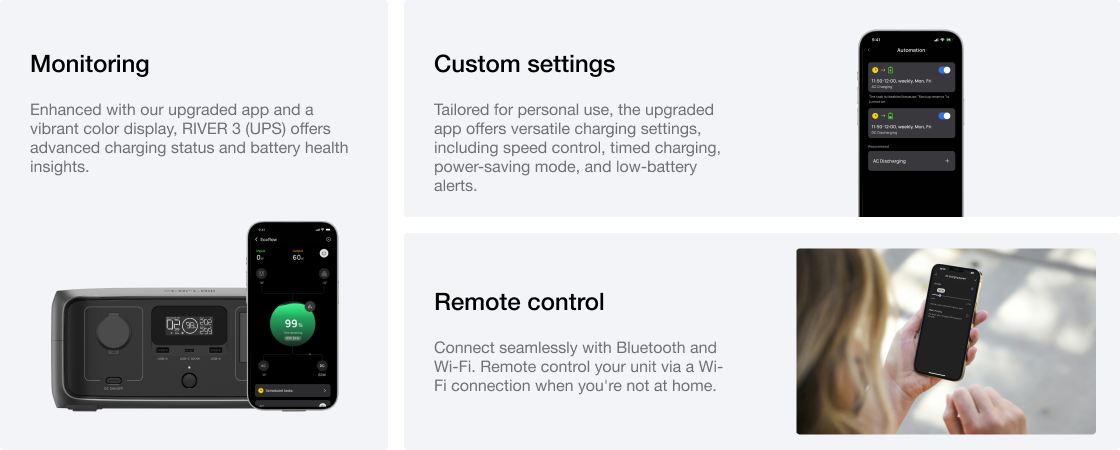 Equipped with an advanced algorithm for cloud-based battery monitoring and over 40 safety measures, the RIVER 3 (UPS) protects against risks related to current, voltage, temperature, and circuits.