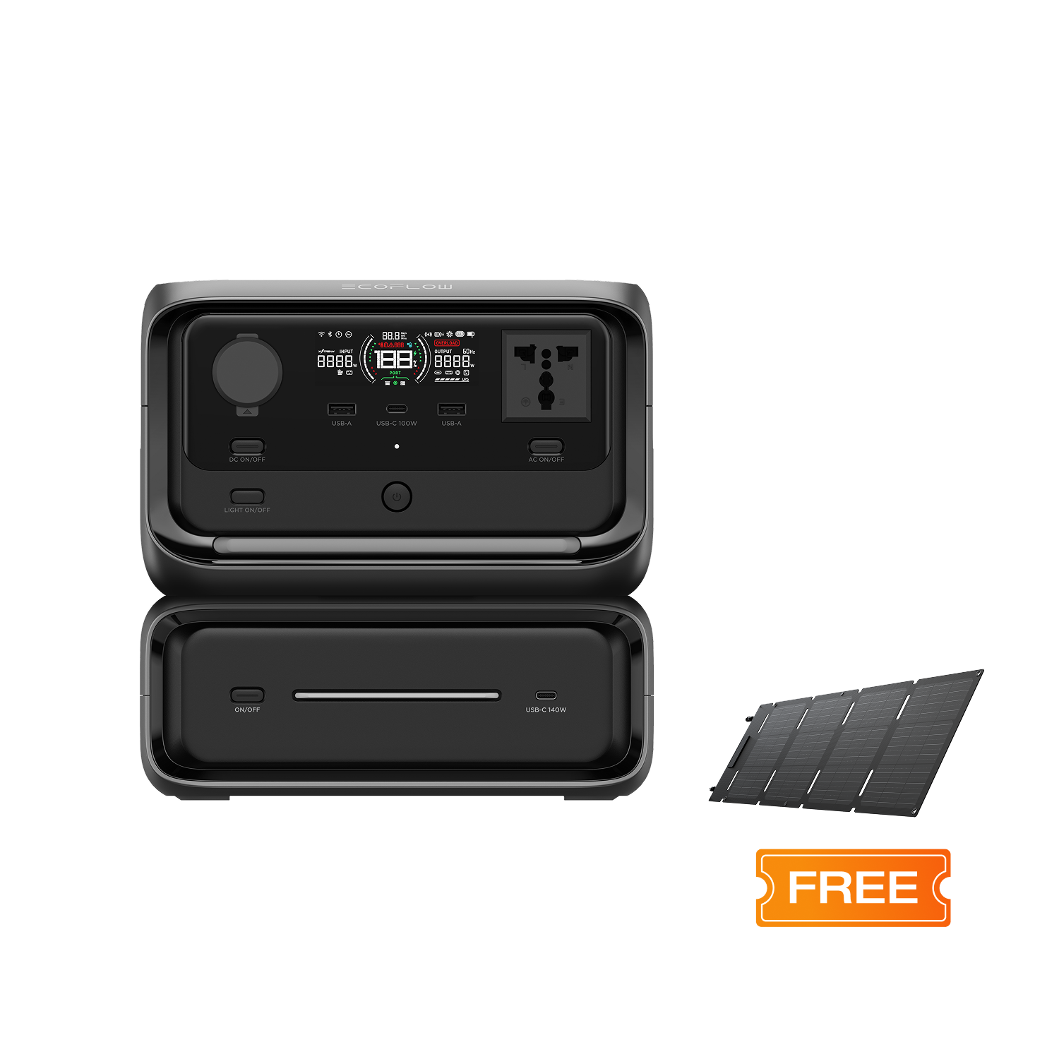 RecommendRIVER 3 Max Plus Solar Generator (PV160W)Capacity: 858Wh (71.5Ah@12V)