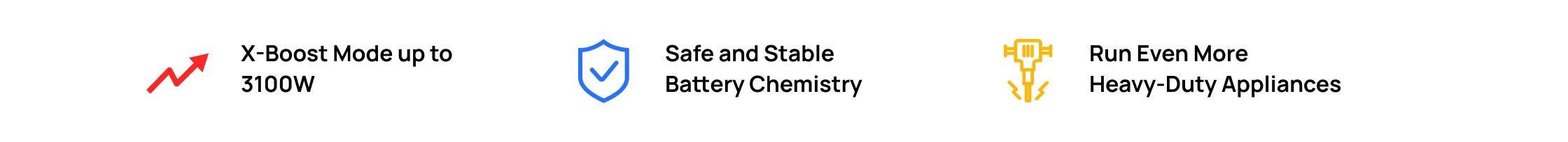 DELTA 2 Max powers almost all the devices you need with a large 2400W AC output. Plus, with X-Boost proprietary technology, run appliances with an output of up to 3100W. Compared with other power stations, DELTA 2 Max can power more devices, while still preventing overloading and overheating.