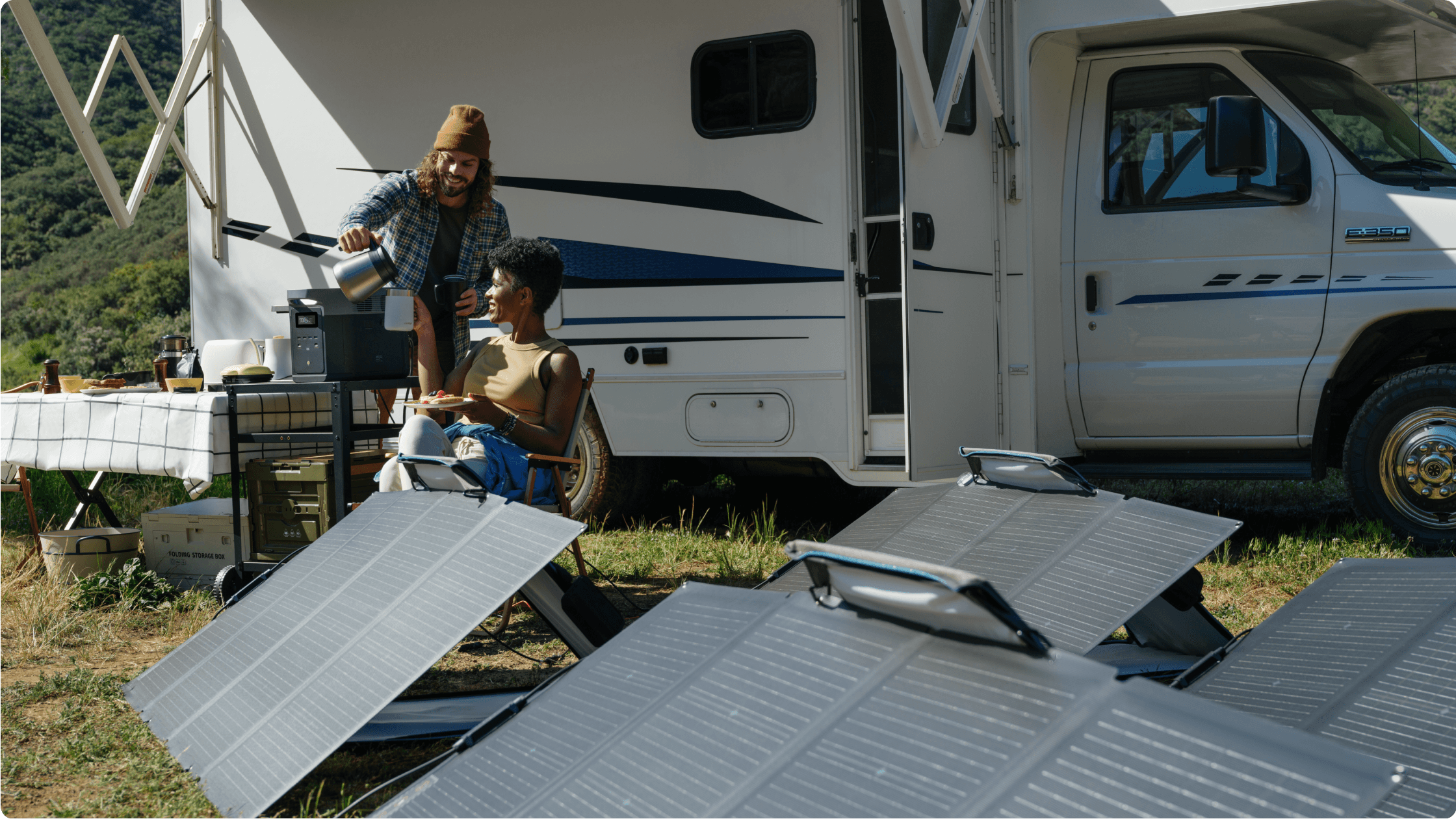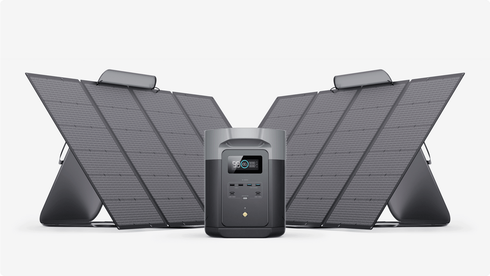 With a solar input of 1000W, fully recharged in 2.3 hours by connect up to 2 EcoFlow 400W Portable Solar Panels or 4 sets of 220W Bifacial Solar Panels.