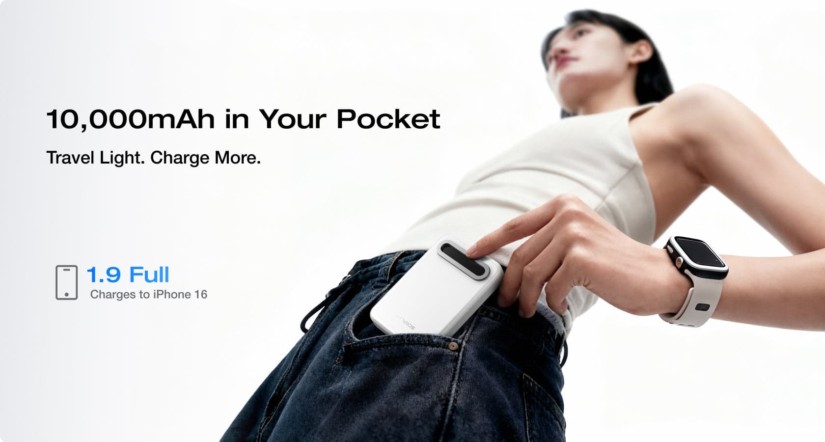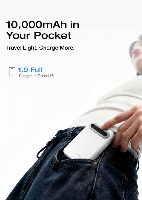 At just 5/8" (15.95 mm), it slides effortlessly into pockets, laptop sleeves, or handbags. Its slim design makes it easy to hold both your phone and the power bank in one hand.