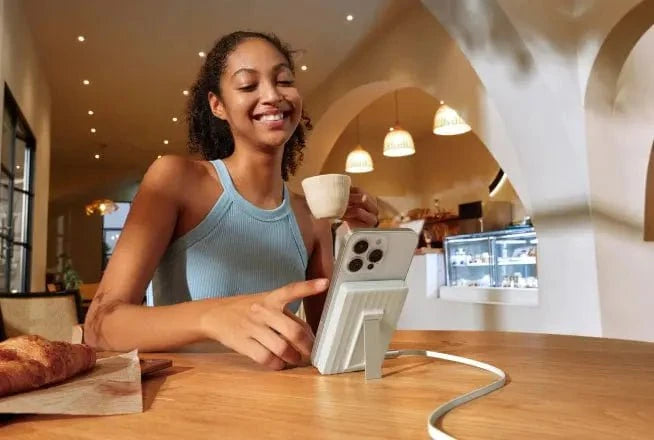 Do not use a phone case or choose a thin phone case with a magnetic design that is less than 2.5mm thick and align it with the wireless charging position of the power bank.